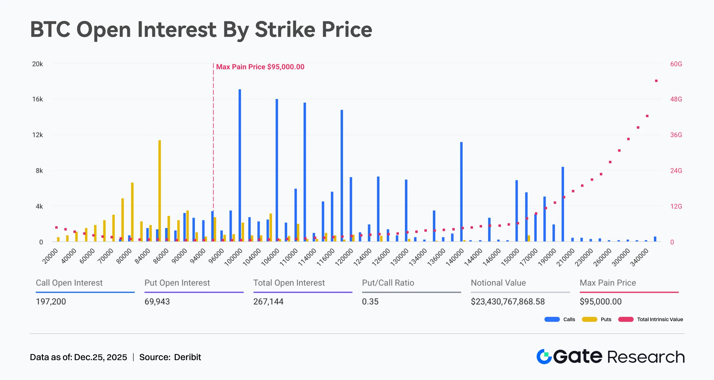 في 26 ديسمبر (الجمعة)، ستنتهي خيارات Bitcoin بقيمة اسمية تقارب 23.4 مليار دولار أمريكي، في أكبر حدث انتهاء في تاريخ سوق خيارات Bitcoin. تشير التحليلات إلى أن هيكل هذا الانتهاء يميل إلى الإيجابية المعتدلة، مع نقطة الألم القصوى بالقرب من 95,000 دولار أمريكي، ما قد يضغط صعودياً على السعر في الأجل القصير.