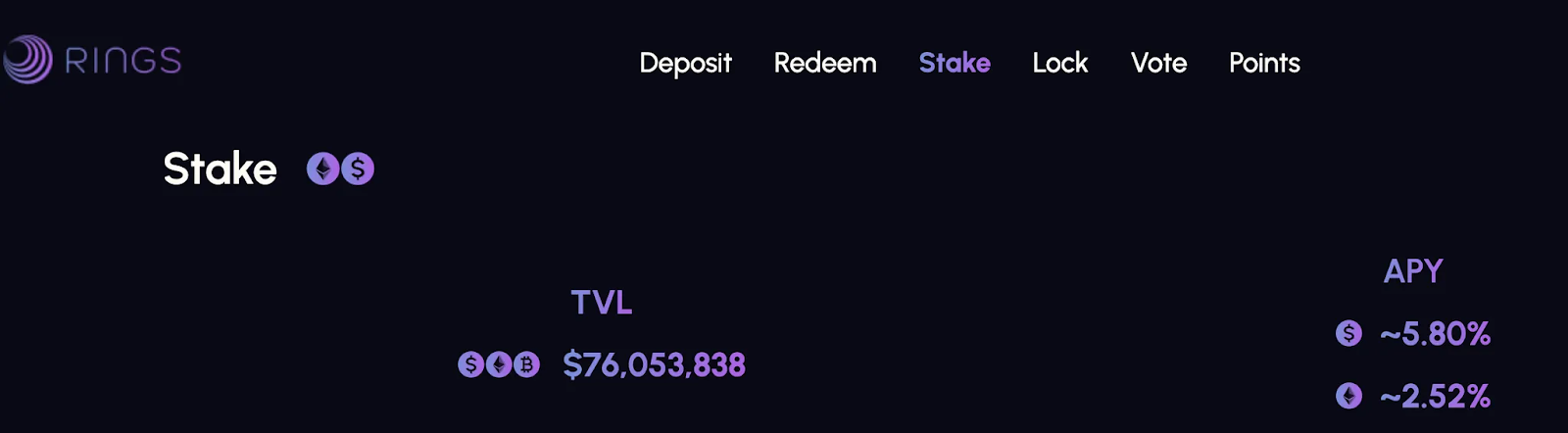 بصفته “مركز العملات المستقرة” لنظام Sonic البيئي ، يحقق Rings Protocol تجميع الإيرادات عبر السلاسل من خلال Veda Labs 'Boring Vaults. بعد إيداع USDC ، يمكن للمستخدمين سك العملة المستقرة ذات الضمانات الزائدة scUSD (3.7٪ الأساسية) ، والمزيد من الحصة لتوليد رمز stkscUSD الحامل للفائدة (سنوي 5.8٪). لا تؤدي هذه العملية إلى تأمين الأرباح الأساسية فحسب ، بل تكسب أيضا مكافأة 2x لنقاط Sonic - والتي سيتم استبدالها بإسقاط جوي لرمز Sonic mainnet $S في المستقبل 4.