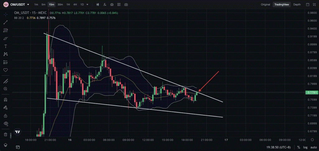 ومع ذلك، لم يستمر زخم الارتفاع طويلاً. على الرغم من أنه بلغ 0.78 دولار بعد الأخبار الإيجابية، إلا أن الرمز المميز OM قد انخفض مرة أخرى، ويتداول حول 0.64 دولار في وقت كتابة المقال.