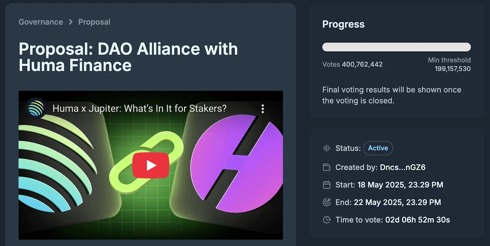 بالإضافة إلى ذلك ، يخطط الطرفان لبناء تحالف DAO لتوسيع نفوذهما من خلال نشر الميم والأنشطة المشتركة. كشف مياو ، المؤسس المشارك لكوكب المشتري ، في مقال طويل أن علاقته الشخصية التي استمرت عشر سنوات مع مؤسس Huma أربيل كارامان قد أرست أساسا للثقة للتعاون - من التعارف المبكر ل Quora ، إلى تبشير Bitcoin داخل Facebook ، إلى التخطيط المشترك لحادثة حرق رمز JUP ، تجاوزت العلاقة بين الاثنين المصالح التجارية وأصبحت “رابطة عاطفية” للارتباط البيئي.