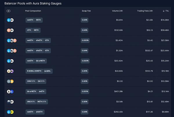 في الوقت الحاضر ، تتجاوز قيمة TVL الخاصة بـ wstETH التي تم تحفيزها بواسطة Aura Finance 30 مليون دولار أمريكي ، وسيولة LSDfi Raft Finance الموجهة بواسطة Aura تتجاوز 30 مليون دولار أمريكي ، وتبلغ سيولة BadgerDAO الأصلية وسيولة RETH حوالي 15 مليون دولار أمريكي ، وإجمالي أكثر من 2 LSD- تم استيعاب مجمعات الأموال ذات الصلة. مليار دولار.