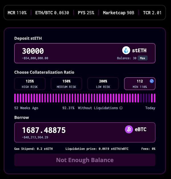 يستخدم eBTC تصميمًا قائمًا على CDP يسمح لأي شخص باقتراض eBTC برسوم 0٪ باستخدام stETH ، بهدف أن يكون الطريقة الأكثر كفاءة في استخدام رأس المال لاستخدام stETH على mainnet. يسمح eBTC بحد أدنى من نسبة الضمان 110٪ ويوفر للمستخدمين رافعة مالية تزيد عن 10 أضعاف مما يسمح لهم بتعظيم تعرضهم لرأس المال. في الوقت نفسه ، يسمح البروتوكول للمستخدمين بتبني مجموعة متنوعة من استراتيجيات السوق ، بما في ذلك ETH الطويل لكسب الفائدة و BTC قصير مع رافعة مالية 10 مرات. نظرًا لارتباط ETH / BTC ، يمكن للمستخدمين أيضًا الاستفادة من أرباح ETH الخاصة بهم لتقليل مخاطر التصفية.