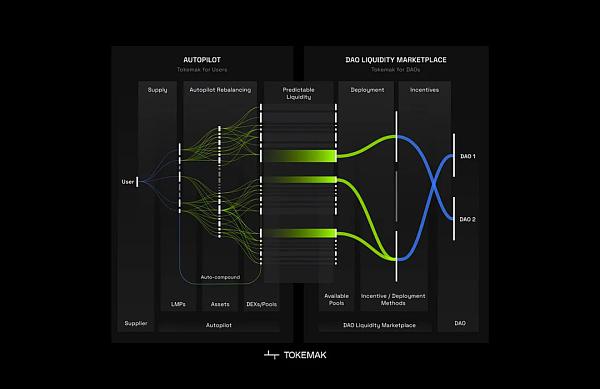 يتكون النظام الجديد من منتجين منفصلين ، الأول هو الطيار الآلي ، وهو مُخصص ديناميكي للمجمع يعمل على تحسين عائد LPs عبر مجموعات مختلفة و DEXs ، والثاني عبارة عن دفتر أوامر سيولة يمكّن DAOs من تأجير السيولة على أساس أسعار السوق الشفافة. . سيتم إطلاق Tokemak V2 بالتتابع ، مع كون الطيار الآلي هو المنتج الأول ، يليه سوق السيولة DAO.