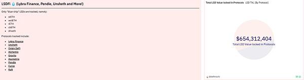 وفقًا للإحصاءات غير المكتملة ، يبلغ مقياس تعهدات ETH الحالي 22.7 مليون دولار أمريكي ، أي حوالي 41.4 مليار دولار أمريكي ، في حين أن الأموال المحجوزة في بروتوكول LSDfi أقل من مليار دولار.