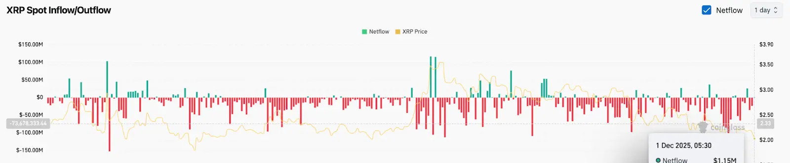 التدفق الأخير ليس كبيرًا بما يكفي للإشارة إلى تغيير الاتجاه. بدلاً من ذلك، فإنه يُظهر استقرارًا مؤقتًا بعد شهر من التوزيع المستمر. طالما أن التدفقات تبقى غير متسقة، سيكون من الصعب على XRP الدفاع عن النطاقات الأعلى.