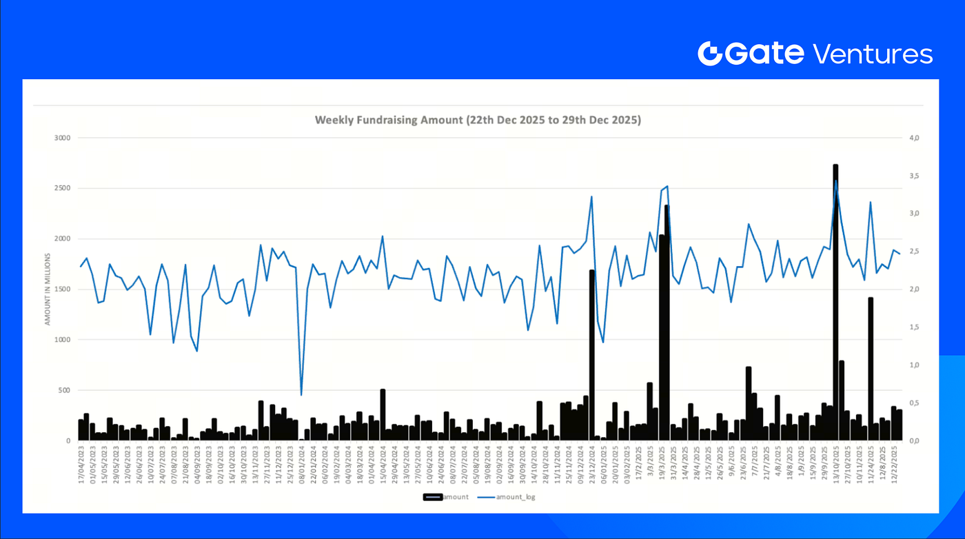 Resumen semanal de acuerdos venture, Fuente: Cryptorank y Gate Ventures, a 29 de diciembre de 2025