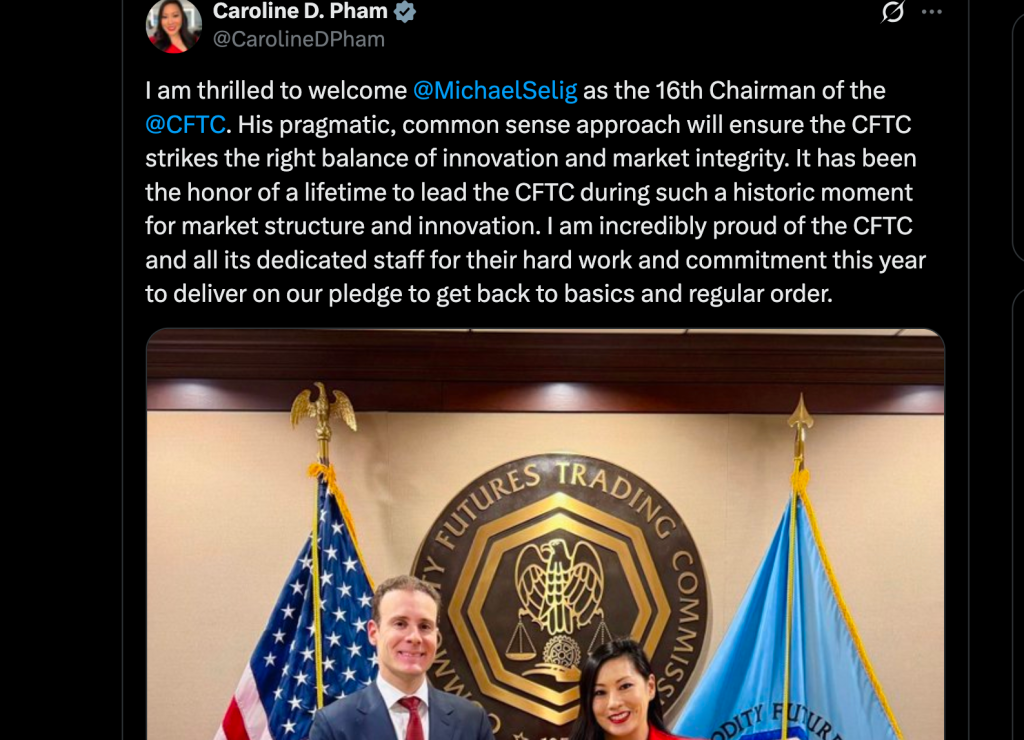 La Comisión de Comercio de Futuros de Commodities (CFTC) ha experimentado oficialmente un cambio en su liderazgo. Mike Selig ha sido juramentado como el 16º presidente de la agencia, en reemplazo de la presidenta interina Caroline Pham.