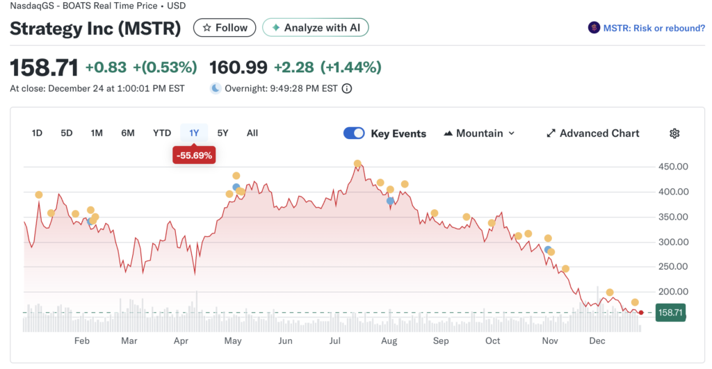 El rendimiento de las acciones contrasta con el mercado en general y con las criptomonedas en sí: el S&P 500 subió fuertemente en 2025 (los datos a corto plazo muestran un aumento de aproximadamente un 17-20%), mientras que Bitcoin cerró el año con una ligera caída, con caídas de alrededor de un solo dígito según algunas medidas en lo que va de año; Múltiples resúmenes apuntan a un descenso de alrededor del 4% o ligeramente mayor respecto al pico de octubre. Esta divergencia refleja el flujo de fondos hacia acciones consideradas relacionadas con temas estructurales a largo plazo (IA, informática, infraestructura energética), y los inversores están revisando los fundamentos de las empresas subyacentes incluso cuando el puro impulso del precio de las criptomonedas se debilita.