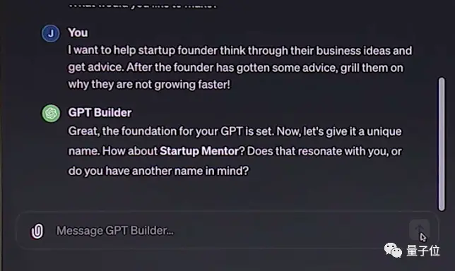 Después de solo 3 rondas de conversaciones con GPT Builder, se construyó un Startup Menter.