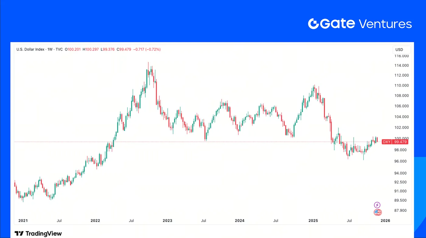Le dollar américain a connu une semaine d'ajustement des prix, avec le prix passant de plus de 100 $ au niveau actuel de 99,479 $, alors que le pari selon lequel la Fed réduira les taux a conduit au retrait des investisseurs sur le dollar américain. (3)