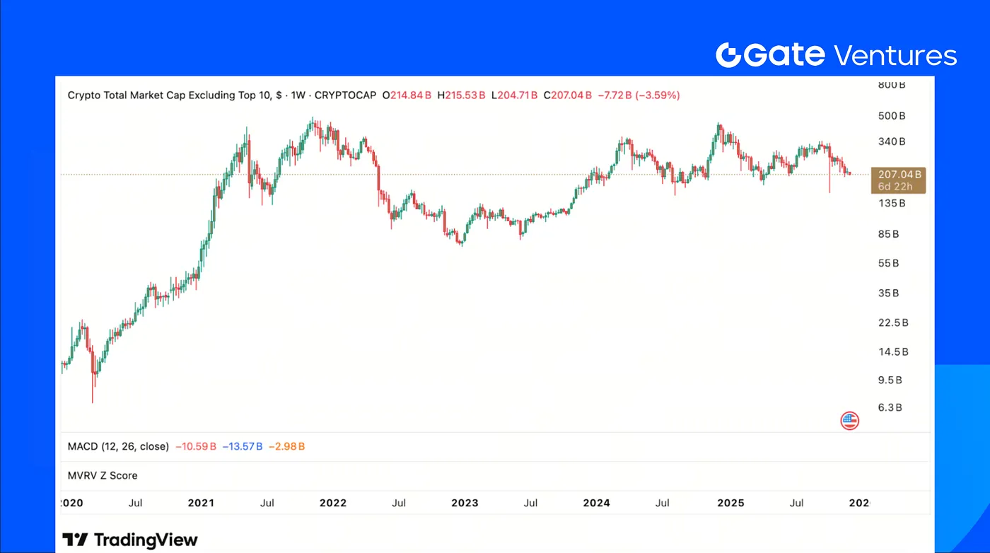 Capitalisation totale du marché Crypto excluant la dominance des 10 premiers