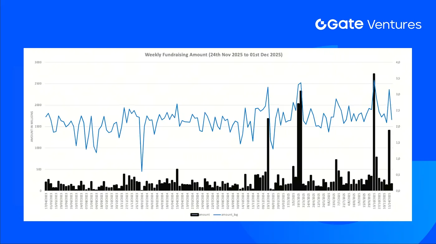 Résumé hebdomadaire des transactions de capital-risque, Source : Cryptorank et Gate Ventures, au 01er déc. 2025