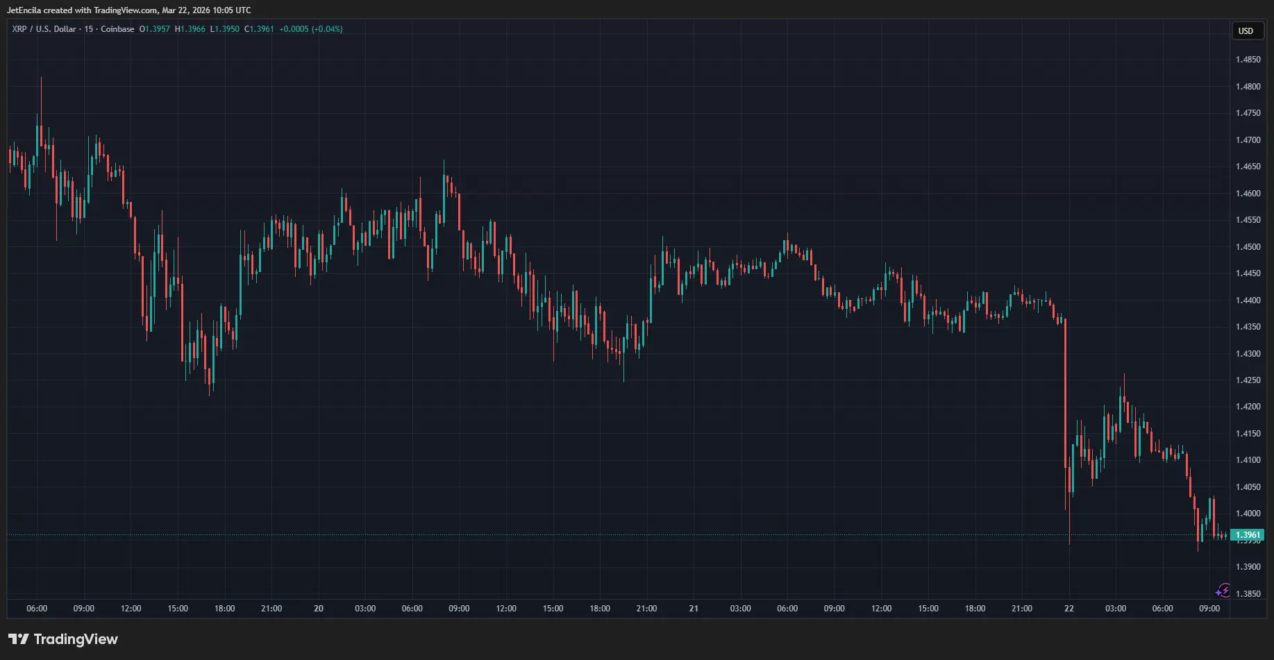 XRPUSD actuellement à 1,39 $. Graphique : TradingView