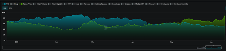 Namun, harga token dari proyek DeFi ini umumnya mengalami reli yang signifikan, dengan reli sekitar 95,59% pada rata-rata terendah. Di antara mereka, beberapa token seperti ether.fi, Sky, Aave, EigenLayer, dan Pendle semuanya telah rebound lebih dari 150%. Dalam hal pergerakan, posisi terendah koin ini terkonsentrasi pada 7 April, yang mirip dengan tren pasar kripto. Namun, reli umumnya lebih kuat daripada jenis token lainnya. Namun, baik dari perspektif rebound harga atau tren keseluruhan dalam enam bulan terakhir, tren harga token tampaknya tidak berkorelasi langsung dengan kinerja protokol DeFi ini, TVL.