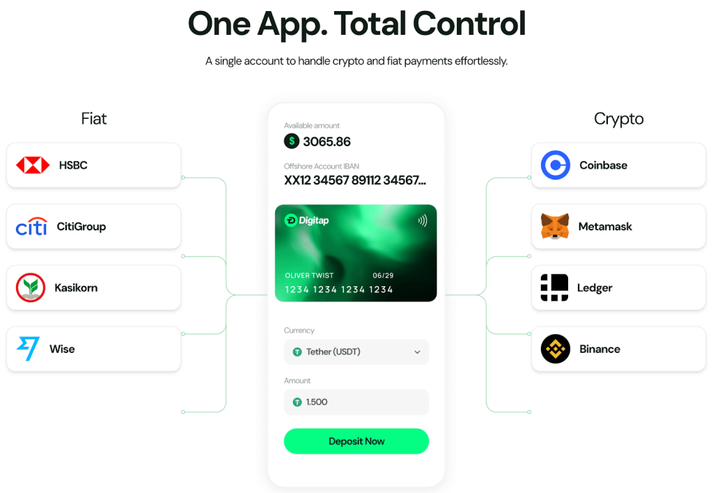 Pertama, Digitap menyelesaikan masalah yang belum diselesaikan kripto. Kebanyakan orang tidak hidup sepenuhnya di blockchain. Mereka mendapatkan penghasilan dalam fiat. Mereka menggunakannya dalam fiat. Digitap akhirnya menggabungkan kripto dan fiat dalam satu atap dengan aplikasi uang globalnya.