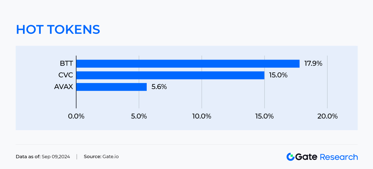 Gate Research Institute Daily Report: Pada 9 September, BTC dan Ether pump masing-masing sebesar 1,32% dan 1,04% dalam 24 jam terakhir. BTC berada dalam kisaran sekitar $55.100, sementara Ether stabil di sekitar $2.312, keduanya menunjukkan level dukungan jangka pendek. Tingkat pengangguran Amerika Serikat pada Agustus sesuai ekspektasi, data pekerjaan non-pertanian di bawah ekspektasi, kemungkinan pemotongan suku bunga Fed pada bulan September meningkat menjadi 70%. Pendapatan Ether.fi pada bulan Agustus mencapai $2,19 juta, 5% akan digunakan untuk pembelian kembali ETHFI dan Penambangan LP. OORT memperbarui model ekonomi Token, memperpanjang periode pembekuan Token tim. Fractal Bitcoin diluncurkan di Mainnet, mengumumkan model ekonomi Token.