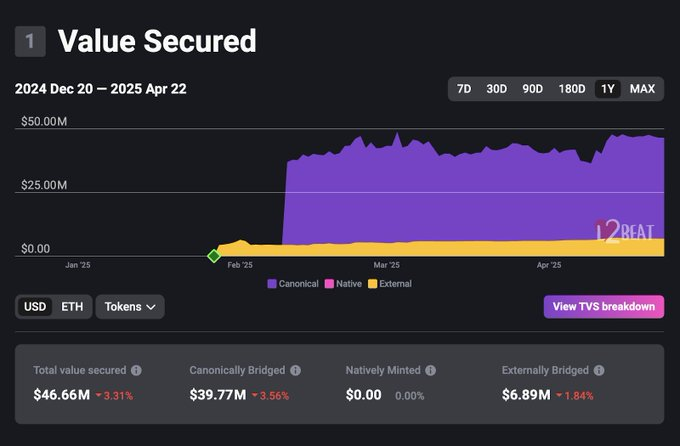 現在、Abstractプロトコルのロックされた金額は4666万ドルに達しています。立ち上げ初期に急速な成長を見せた後、TVSは常に4500万ドル以上を維持しており、2月初めには顕著な成長のピークが見られました。4月初めには若干の減少(約3%)を経験しましたが、資金規模はすぐに回復し、これはこのプロトコルが安定した資金保持能力と低い短期的なボラティリティリスクを持っていることを示しています。