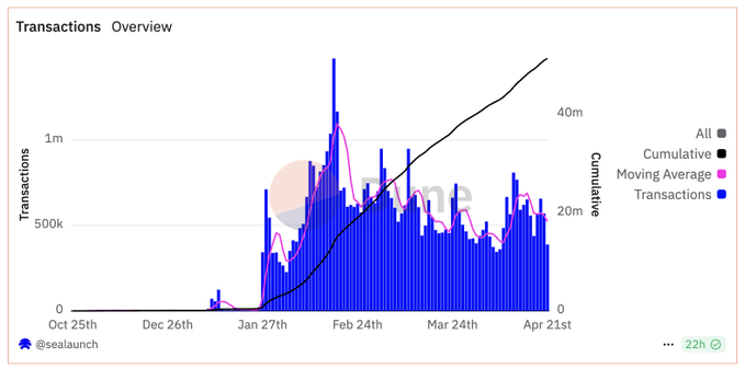 ウォレットとコアインターフェースは、インフラストラクチャだけで2700万件以上の取引と70万人のユーザーを駆動しました。そして、インフラストラクチャの外では、ガチャゲーム、Myriad、Reservoirなどのアプリケーションも継続的にユーザーの再訪問行動を示しています。