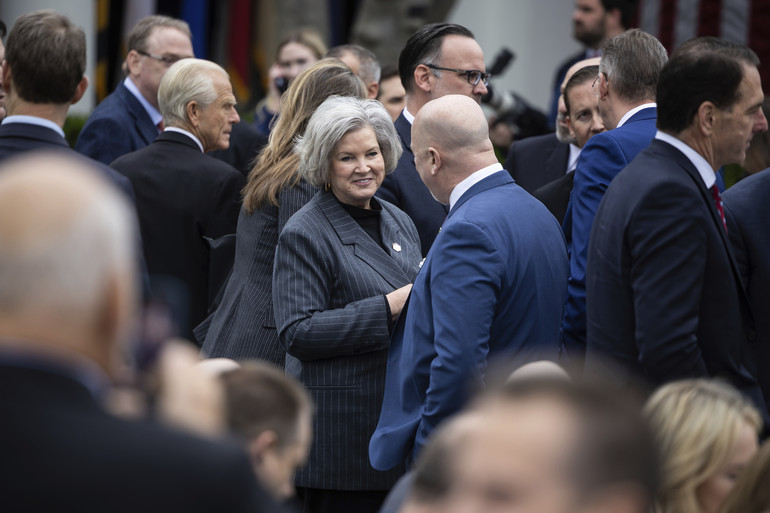 ホワイトハウスの首席補佐官スージー・ワイルズが2025年4月2日の「アメリカを再び裕福に」イベントの前にホワイトハウスのローズガーデンに姿を見せた。——フランシス・チョン、POLITICO