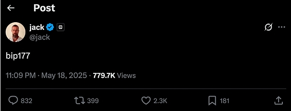 SNSプラットフォームXの創設者ジャック・ドーシーが5月18日に短い"BIP-177"のツイートを投稿した後、この議論は急速にヒートアップし、コミュニティメンバーの激しい議論を引き起こしました。