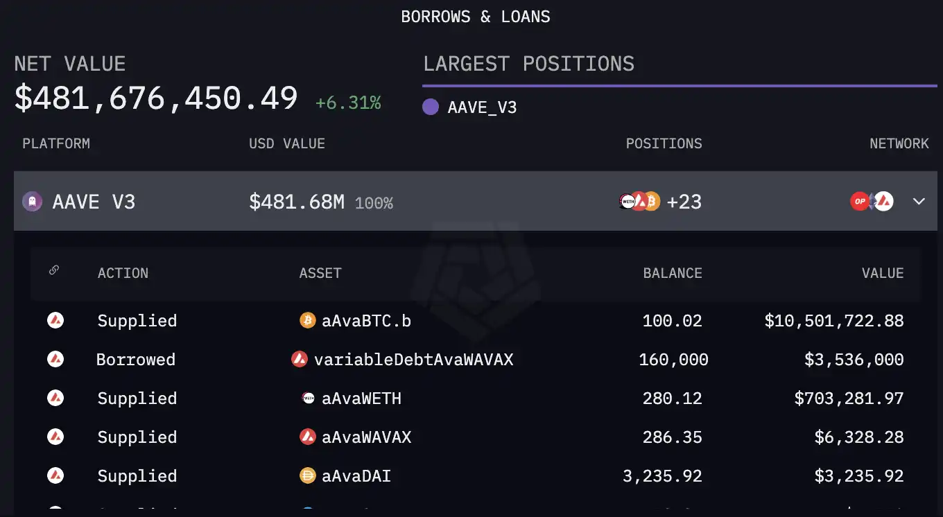 資産構造の観点からは、1億9,000万ドル以上のビットコインに加えて、Abraxas Capitalのポートフォリオは、ステーキングやさまざまなDeFiプロトコルに投資される担保として使用されるイーサリアムリキッドステーキングトークン(LST)トラックに非常に集中しています。 主な保有資産には、AwETH、wstETH、awstETH、weETHが含まれ、そのうちAwETHとwstETHの合計保有額は7億ドルを超え、全資産の絶対大多数を占めています。 このタイプの資産は、オンチェーンのステーキング利回りと流通市場の流動性を兼ね備えており、これはAbraxas Capitalが安定した収入と柔軟なリバランスのバランスの取れた戦略を追求していることも反映しています。