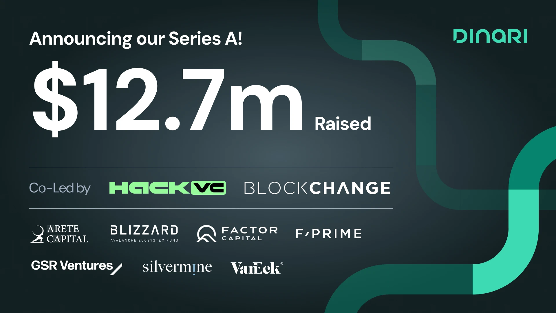 Dinariは、Dinariトークンをローンチしないことを明らかにしています。 2025年5月1日、Dinariは、Blizzard Fund、VanEck、F-Prime Capital、Factor Capital、Arete Capital、GSR Ventures、Silvermine Capitalが参加し、BlockchangeとHack VCが主導する1,270万ドルのシリーズA資金調達ラウンドを終了しました。