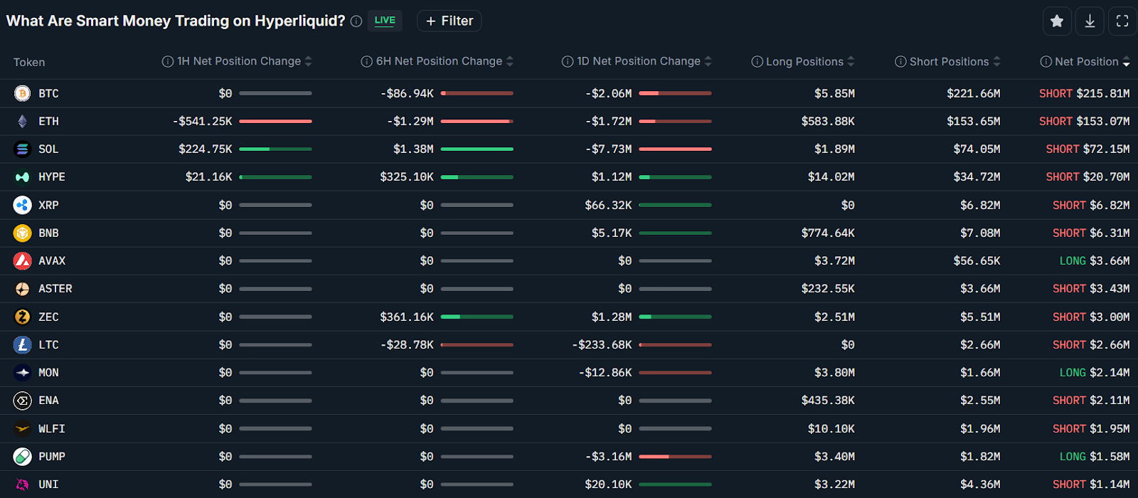 Nansenによると、スマートマネーは、Avalanche (AVAX)トークンと、ミームコインのローンチパッドPump.funの(PUMP)コインを除き、すべての主要暗号通貨でネットショートの状態にあります。