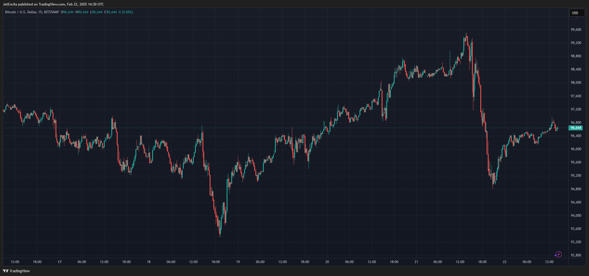 BTCUSDのデイリーチャートでは、$96,675で取引されています:TradingView.com