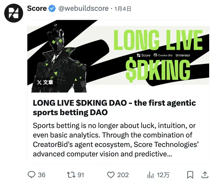 @thedkingdao は、@webuildscore サブネット 44(SN44)で動作する最初の独立したスポーツブックDAO です。