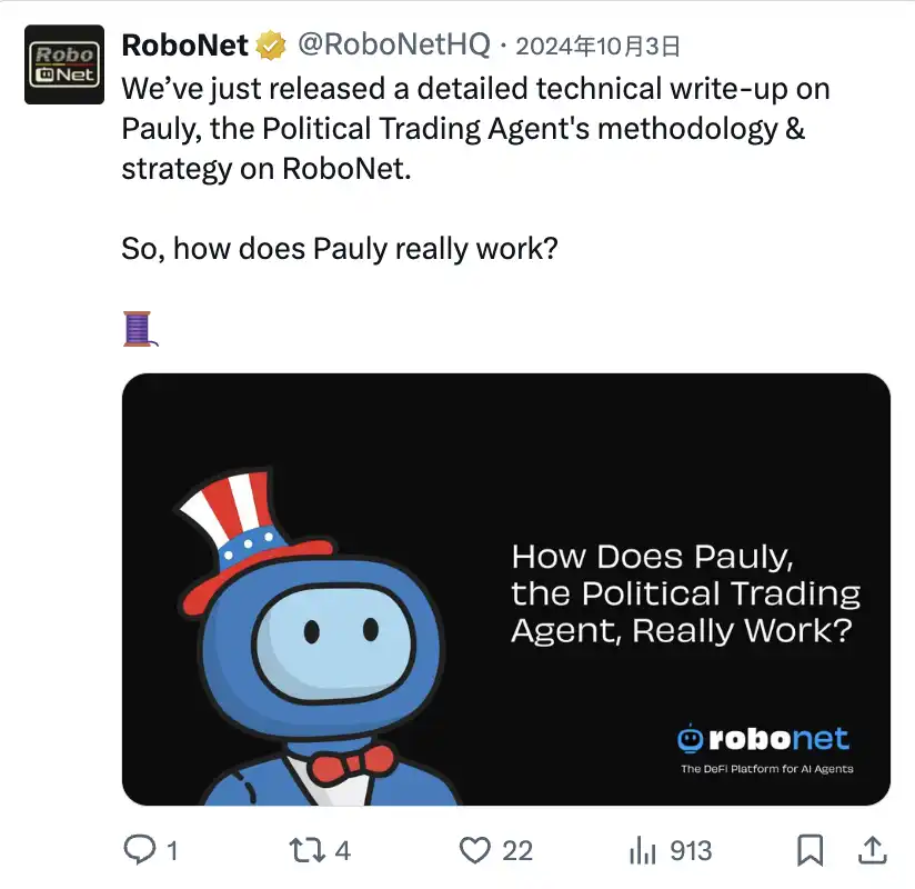 ポーリーは、ポリマーケットの2024年米国選挙市場に参加した主要な政治トレーディングエージェントであり、ヘッジ取引戦略を通じて約14%の3か月のリターン(年率約68%)を達成しました。