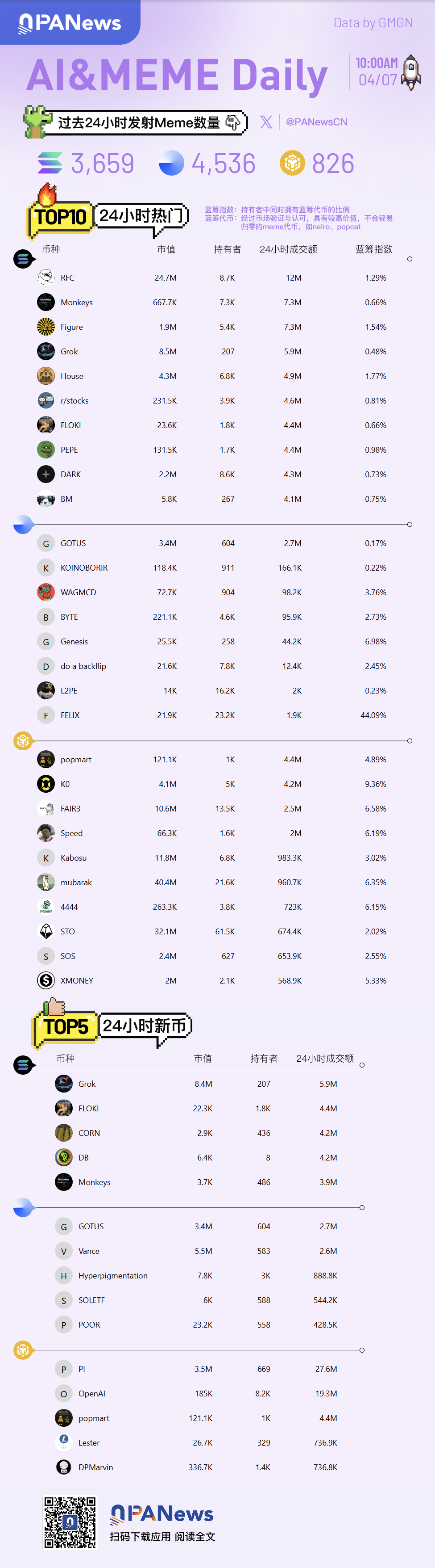 ⚠ ヒント:PVPは高いです、スタッドには注意してください、必ずDYORしてください! Ai&Meme Daily、過去24時間で最も人気のあるAi&Meme(2025.4.7)の1枚の写真