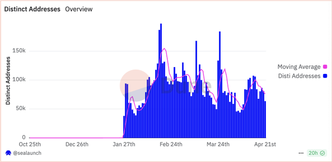 ウォレットとコアインターフェースは、インフラストラクチャだけで2700万件以上の取引と70万人のユーザーを駆動しています。インフラストラクチャを超えて、ガチャゲーム、Myriad、Reservoirなどのアプリケーションも引き続きユーザーの再訪問利用行動を示しています。