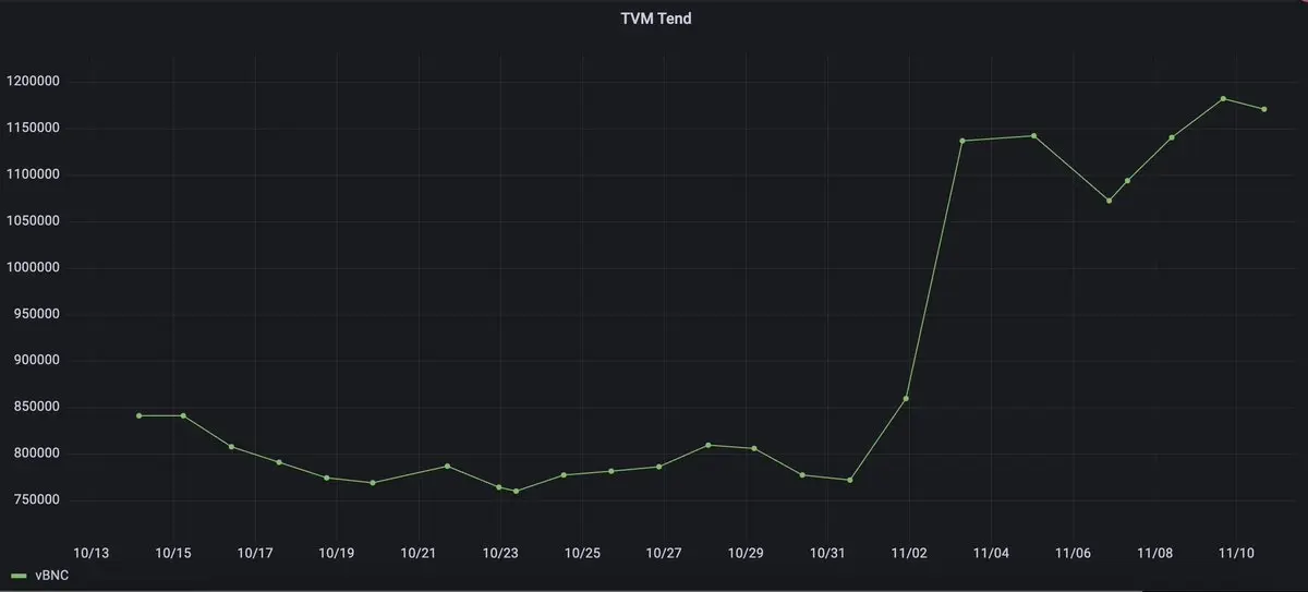 bbBNCがライブになってから約10日で、$vBNC は約300,000増加し、10月下旬の約80万から現在の117万に達しました。これは約45%の驚くべき成長です。