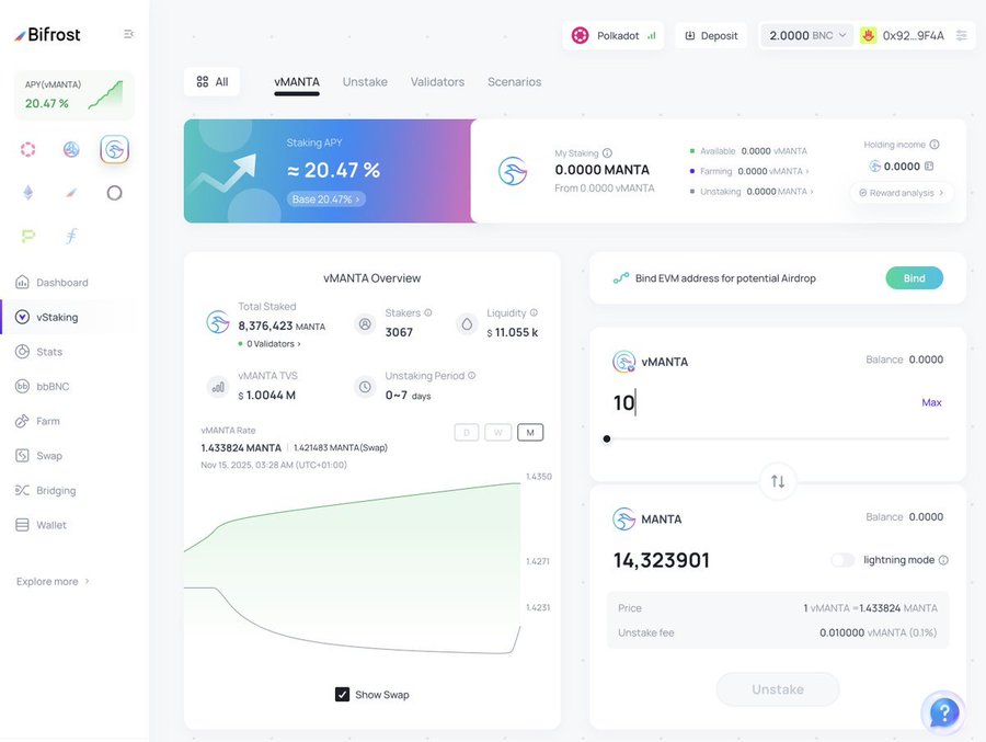 Bifrost上: BifrostのvMANTAステーキングセクションに移動します。