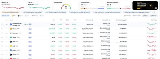 CoinMarketCap基準のグローバルデジタル資産の時価総額は3.17兆ドルで前日比0.78%減少し、時価総額トップ20の銘柄を抽出したCMC20指数は200.65で0.21%上昇した。欲望・恐怖指数は30で「恐怖(Fear)」の範囲を維持し、投資心理は依然として縮小傾向にある。