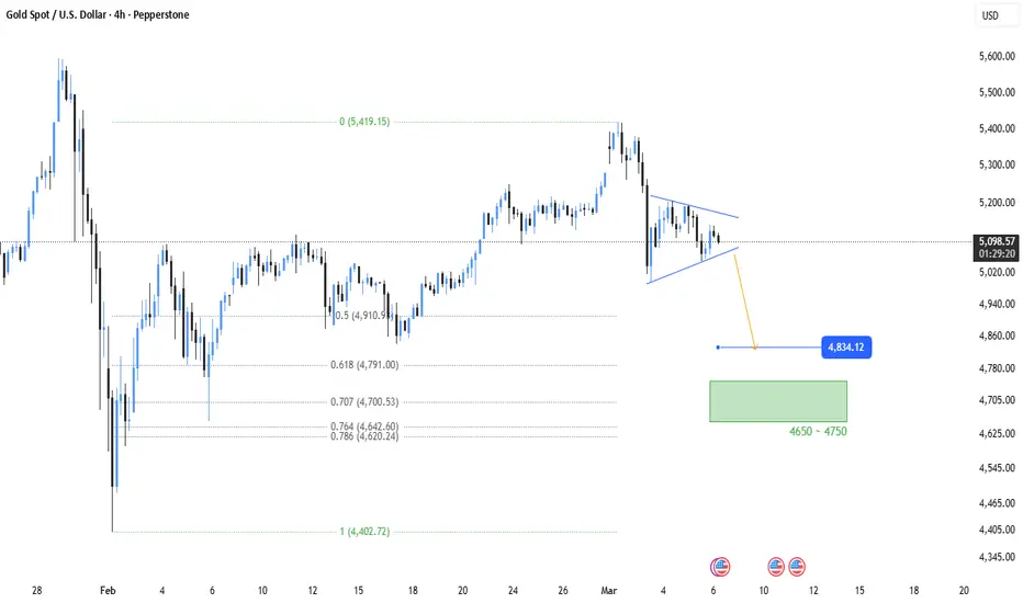XAUUSD — 4H Triangle Compression Inside a Broader Correction