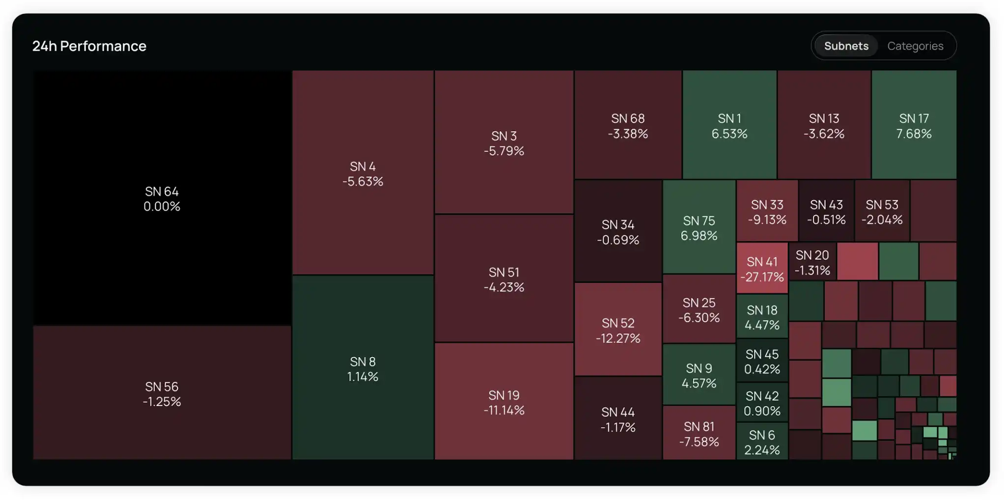 Ao mesmo tempo, o limiar de entrada de sub-redes caiu e o número de sub-redes não está limitado, resultando em muitas e muito rápidas moedas sendo emitidas, diluindo a liquidez geral do ecossistema Bittensor.