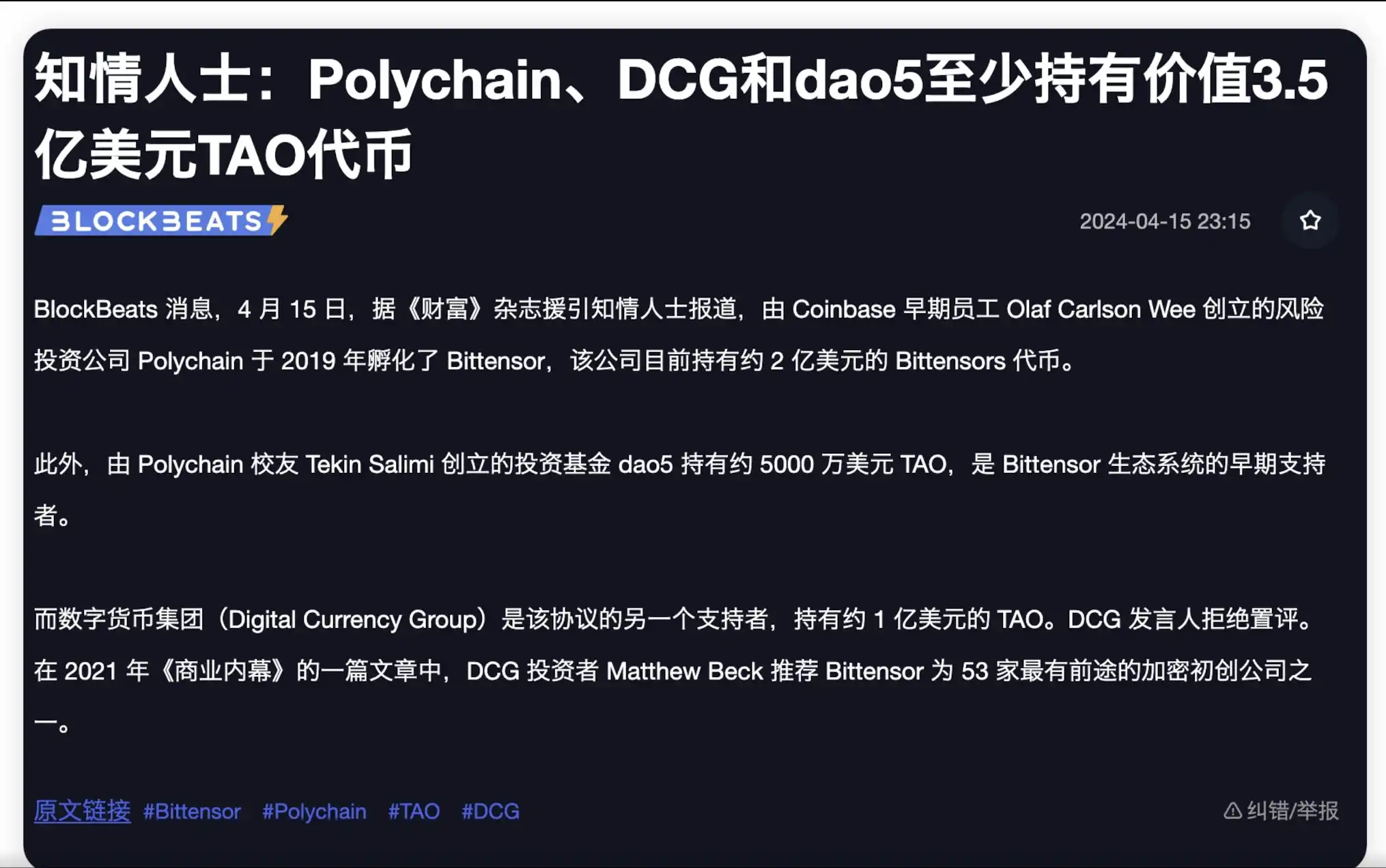 É razoável especular que essa parte do token é dividida entre membros internos e grupos de interesse, porque o Bittensor não é como o Bitcoin, ele é incubado e investido por VCs.
