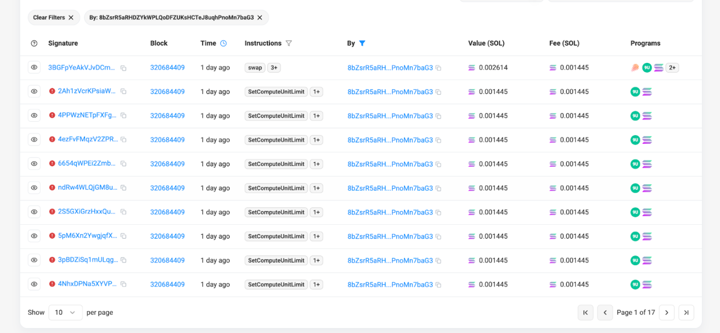 Um trader (endereço: 8bZsrR5aRHDZYkWPLQoDFZUKsHCTeJ8uqhPnoMn7baG3) ganhou o primeiro lugar com uma única operação de 1,4 milhões de dólares, realizando 170 transações no bloco de abertura, até obter sucesso no momento da abertura. Dado que na Meteora todos os dias há aberturas de pools com liquidez unilateral, tal investimento preciso e substancial claramente resultou de informações privilegiadas.