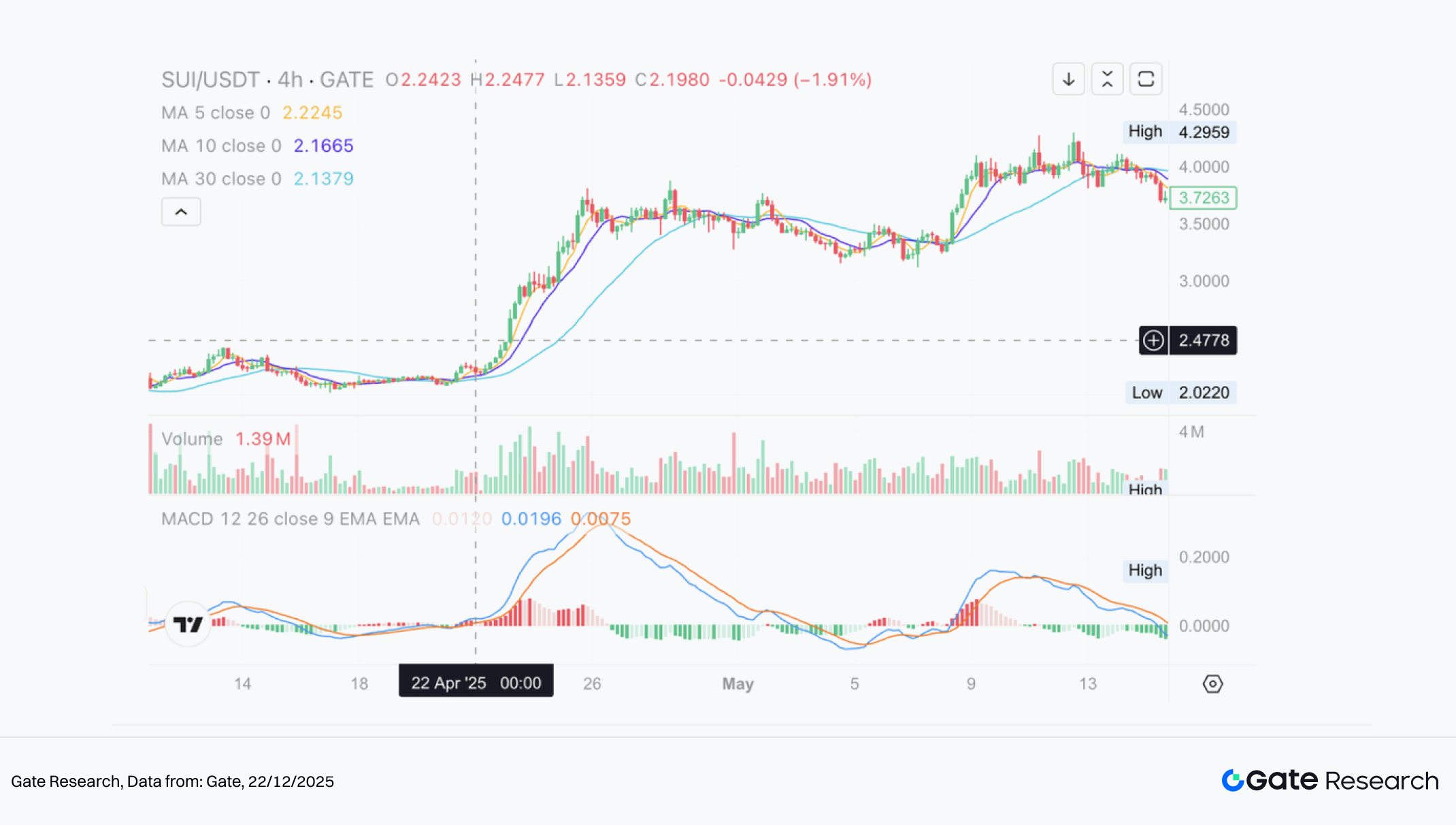 Figura 9: Exemplo de entrada para SUI/USDT quando as condições foram cumpridas (22 de abril de 2025)