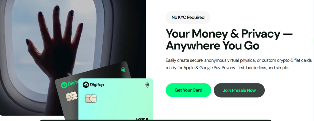Dentro da aplicação Digitap, os utilizadores podem depositar, manter e mover fundos através de redes bancárias e liquidações blockchain de forma fluida. O que realmente distingue a Digitap são os cartões Visa de mínimo a zero KYC. Estes cartões dão aos utilizadores controlo financeiro total, permitindo-lhes partilhar apenas as informações com que se sentem confortáveis.