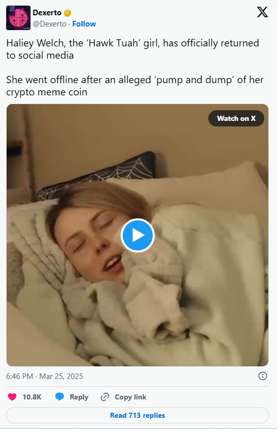 Оригинальное название: «Комиссия по ценным бумагам и биржам США (SEC) дала Hawk Tuah Girl пропуск, но ее $HAWK монета обнажила более серьезную проблему **»