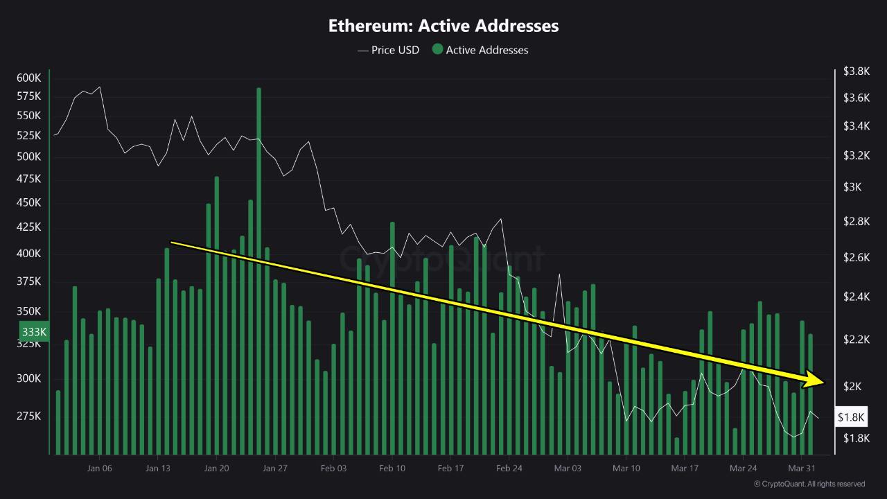 Согласно данным CryptoQuant, основной причиной является снижение сетевой активности: количество активных кошельков и сборы за транзакции резко упали, что привело к падению коэффициента сжигания ETH до рекордно низкого уровня с момента The Merge.