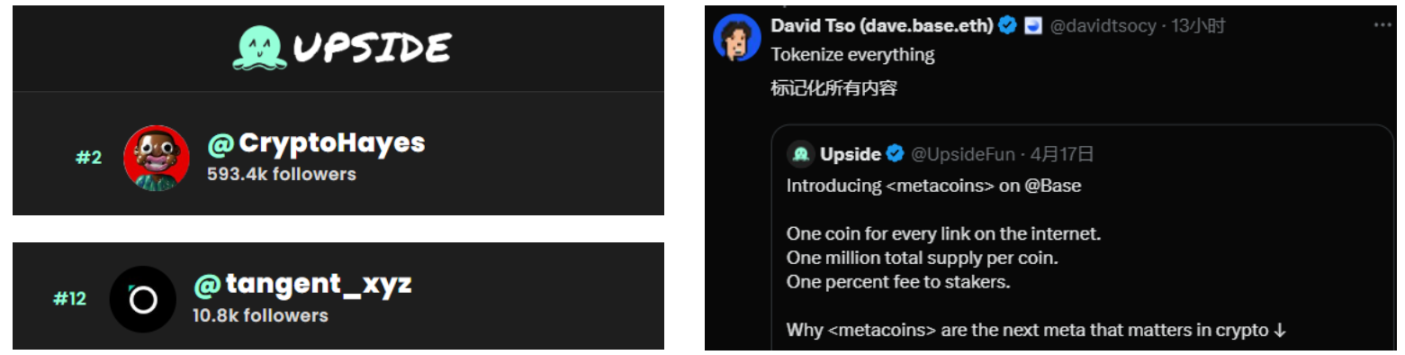 От ChillGuy до Base рост токенов контента не только изменил взаимодействие между создателями и фанатами, но и открыл представление о будущем токенизации информации. И, несмотря на истории успеха контент-токенов, на рынке все еще существует пробел в том, как еще больше токенизировать огромное количество информации в Интернете, такую как блог, короткое видео или даже X-пост. Существующие решения ограничены конкретными платформами (например, экосистемой NFT Zora), и трудно охватить разнообразные формы контента в Интернете. В результате Upside.fun надеется токенизировать любую ссылку в интернете через Metacoin, и даже создать масштабную «информационную экономику».
