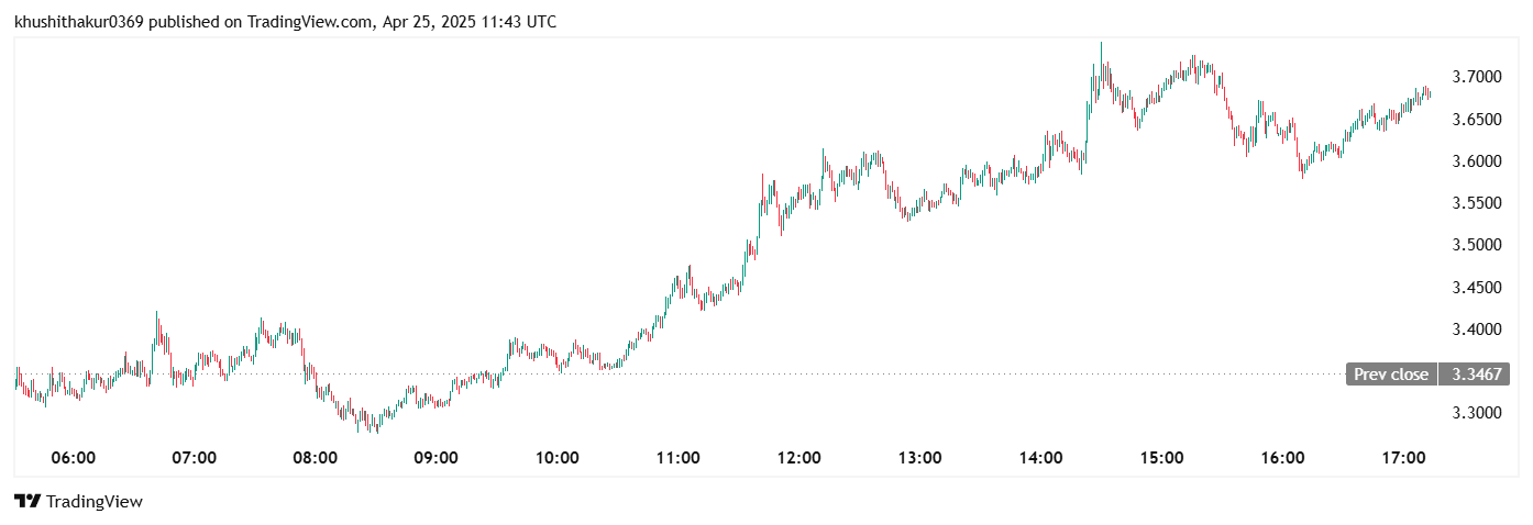 По состоянию на 25 апреля 2025 года цена SUI составляет 3,6835 доллара США, что отражает рост цены на +0,3368 или 10,06%. Этот всплеск стоимости отражает положительную силу слухов, и если слухи окажутся правдой, может произойти повышение цены SUI. По мнению аналитиков рынка, если эта тенденция сохранится, токен SUI может вырасти до $3,80-$4,00 в ближайшей перспективе. Общая стоимость заблокированных (TVL) SUI выросла на 38% и в настоящее время составляет $1,6 млрд