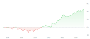 Биткойн и Эфир: За последние 24 часа Биткойн вырос на 2.55%, в то время как Эфир значительно опередил Биткойн, подскочив на 4.30%.