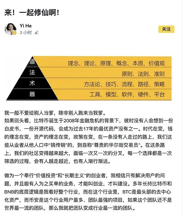 6、$修仙:по словам Хэ Ифаня в посте на площадке Binance, “давайте вместе заниматься 修仙”