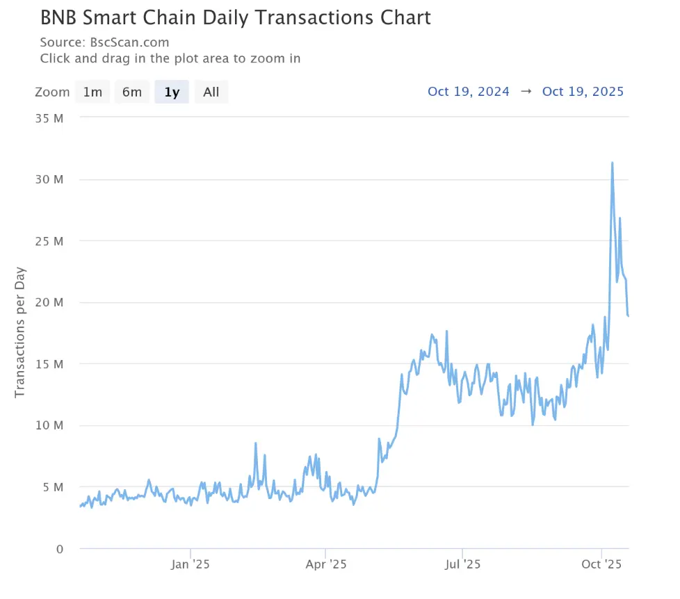 В начале октября 2025 года соучредитель Binance Хэ И в социальных сетях неожиданно разжег творческий энтузиазм китайского криптосообщества фразой “Желаю тебе насладиться жизнью Binance”, что привело к появлению мем-монеты под названием “Жизнь Binance”. Эта концепция быстро распространилась в сообществе и при поддержке лидеров мнений, и за короткое время рыночная капитализация взлетела до 500 миллионов долларов, а рост составил 6000 раз, что стало феноменальным событием. Согласно статистике DeFiLlama, дневной объем торгов на DEX BNB Chain вырос до 60,5 миллиарда долларов, привлекши более 100 тысяч новых трейдеров. Сначала мемы, связанные с Binance, стали популярными, после чего последовали китайские мемы, и на BSC возникло несколько мемов с высокой популярностью, например: