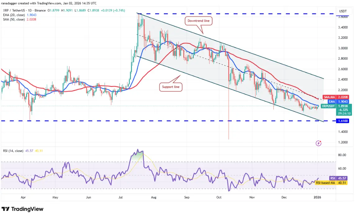 XRP последние несколько дней держится на уровне 20-дневной EMA на уровне $1.90, что увеличивает вероятность прорыва вверх.