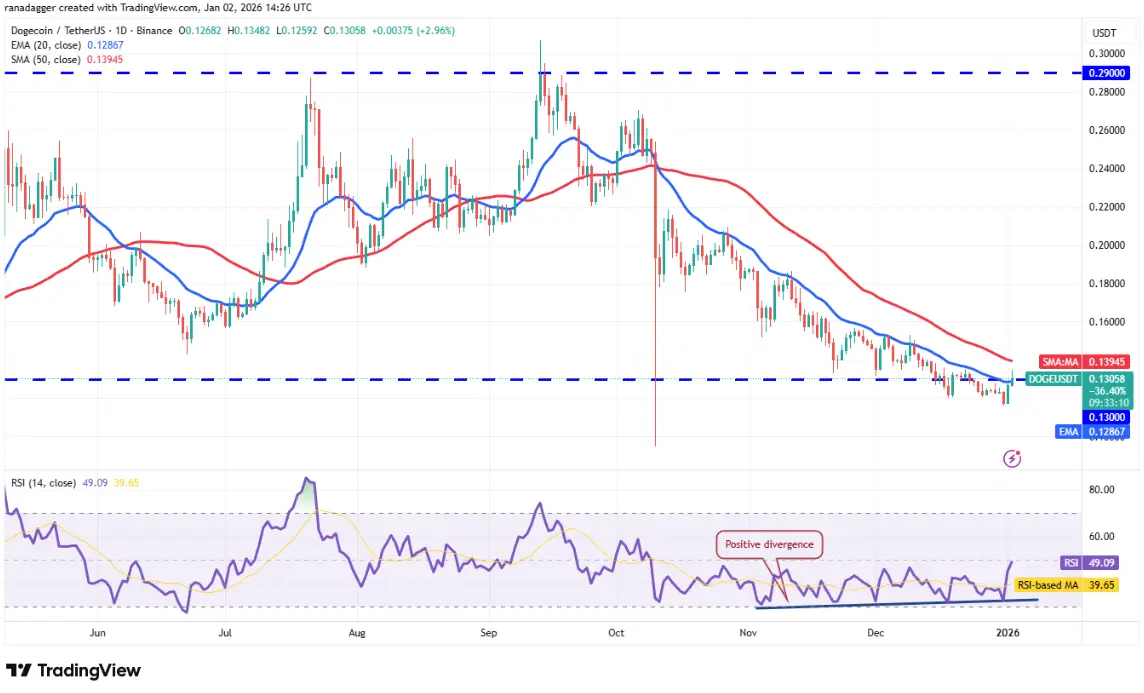 Наоборот, если цена подскакивает и пересекает 50-дневный SMA на уровне $0.14, это означает, что рынок отверг предыдущий медвежий пробой. В этот момент Dogecoin может перейти до района $0.16.